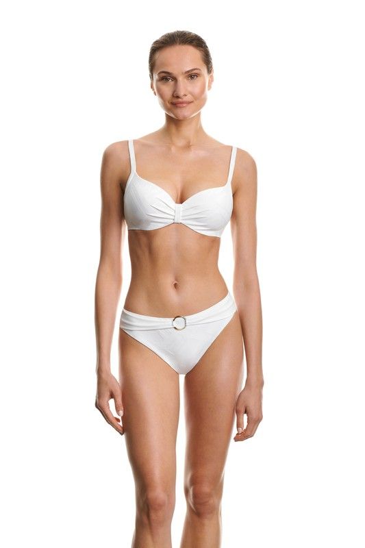 Su forma tipo balconette es monísima, lleva copas y aros "C" por lo que recoge de maravilla y hace un escote espectacular. Un bikini liso es un fondo de armario indispensable para el verano, lo especialmente bonito es el tejido con relieve que le da un toque muy original y diferente. La Braguita es perfecta, de tiro medio, mide 5 cm del lateral y tiene una cobertura media, además lleva en el centro de la braguita un adorno con anilla efecto cinturón súper bonito.